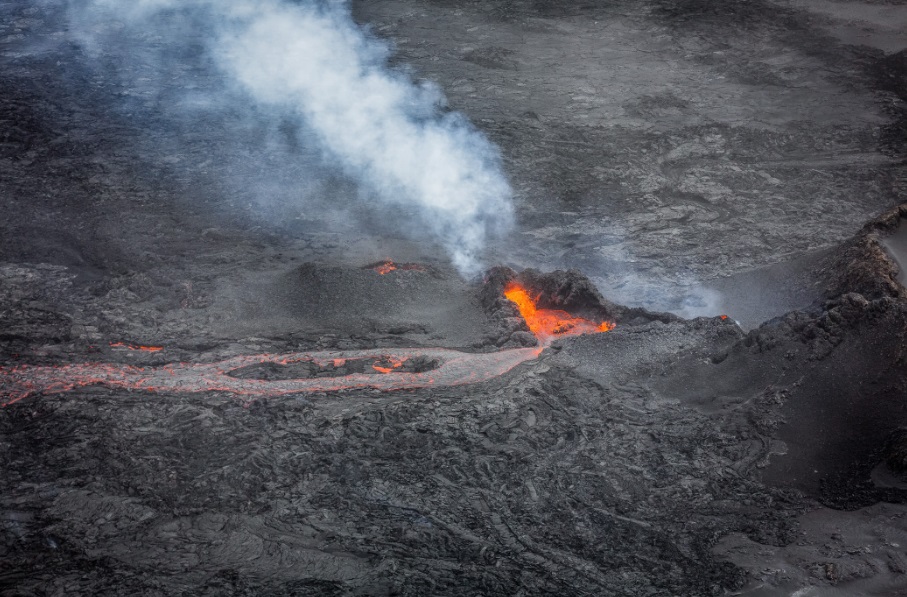 It is located in the North West of the Dyngjujoekull glacier at Iceland. A close up of lave is showing how dangerously hot it is.